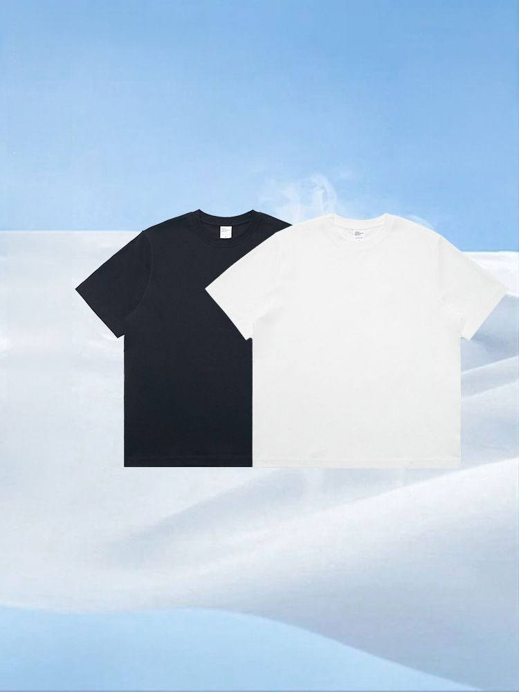 Long-staple cotton old money style straight shoulder cool solid color T-shirt for men