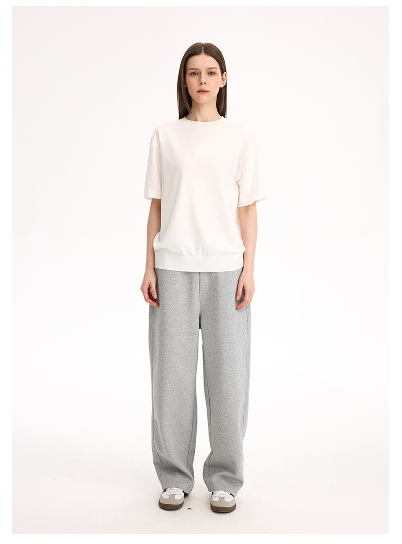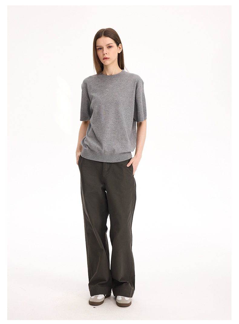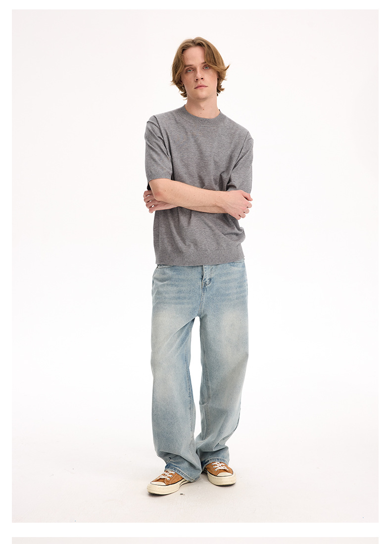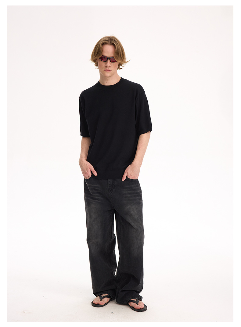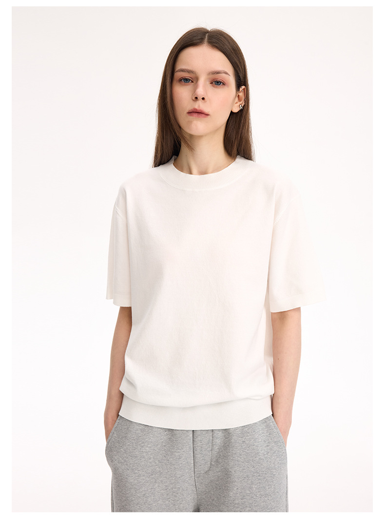 Old money style straight shoulder short sleeve T-shirt small high collar solid color knitted short sleeve for man and women